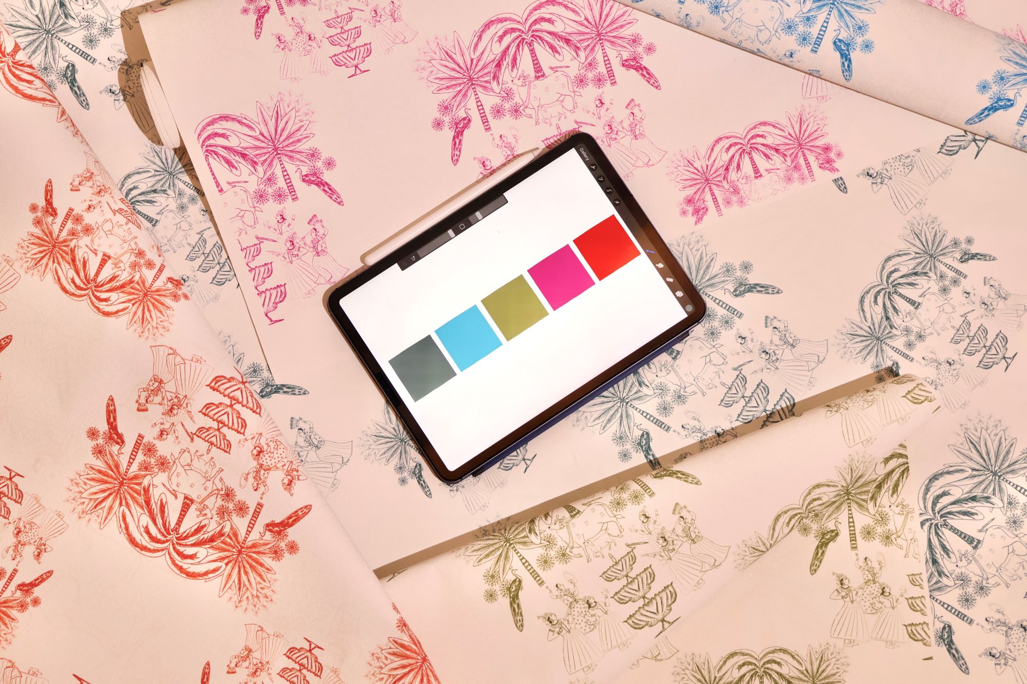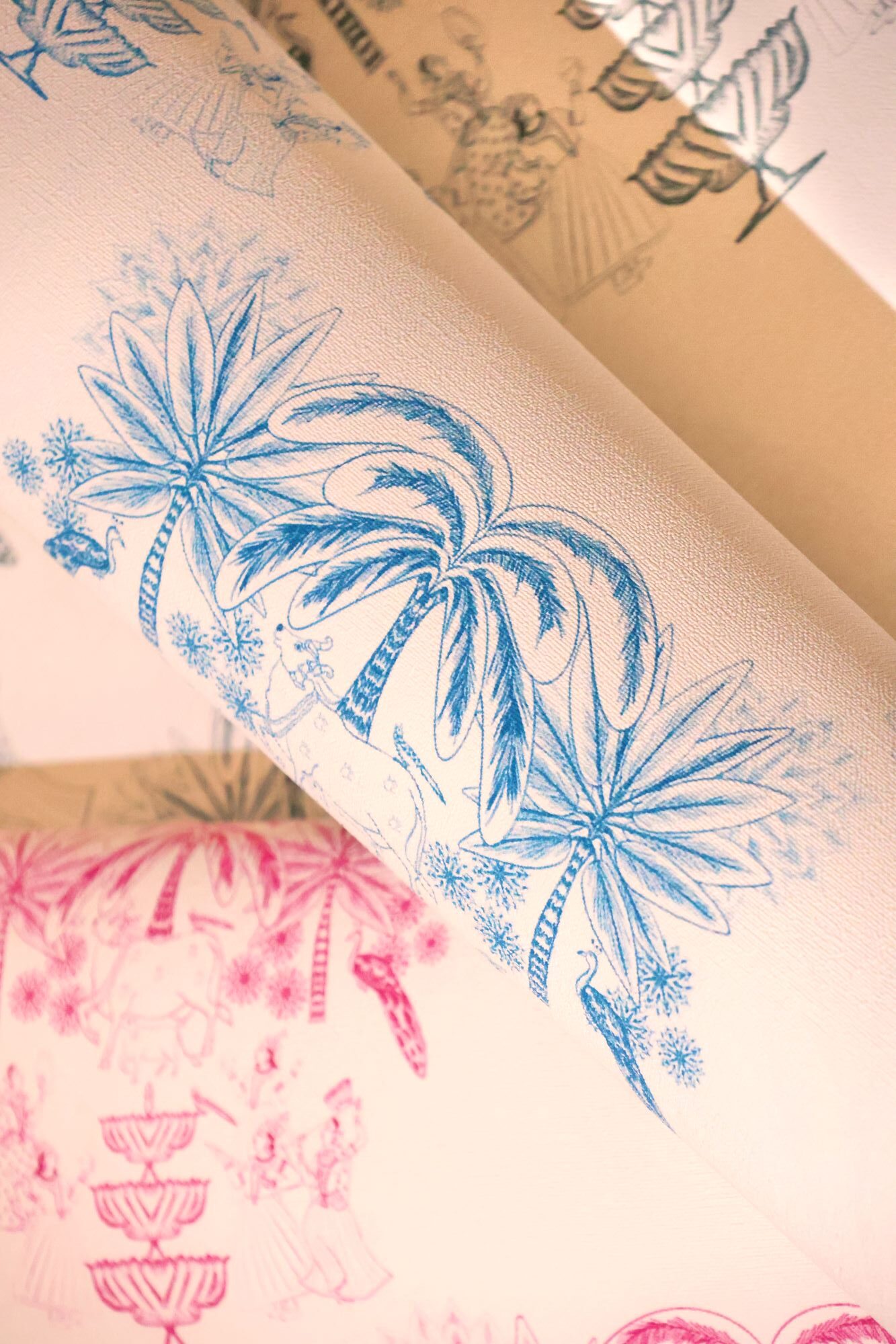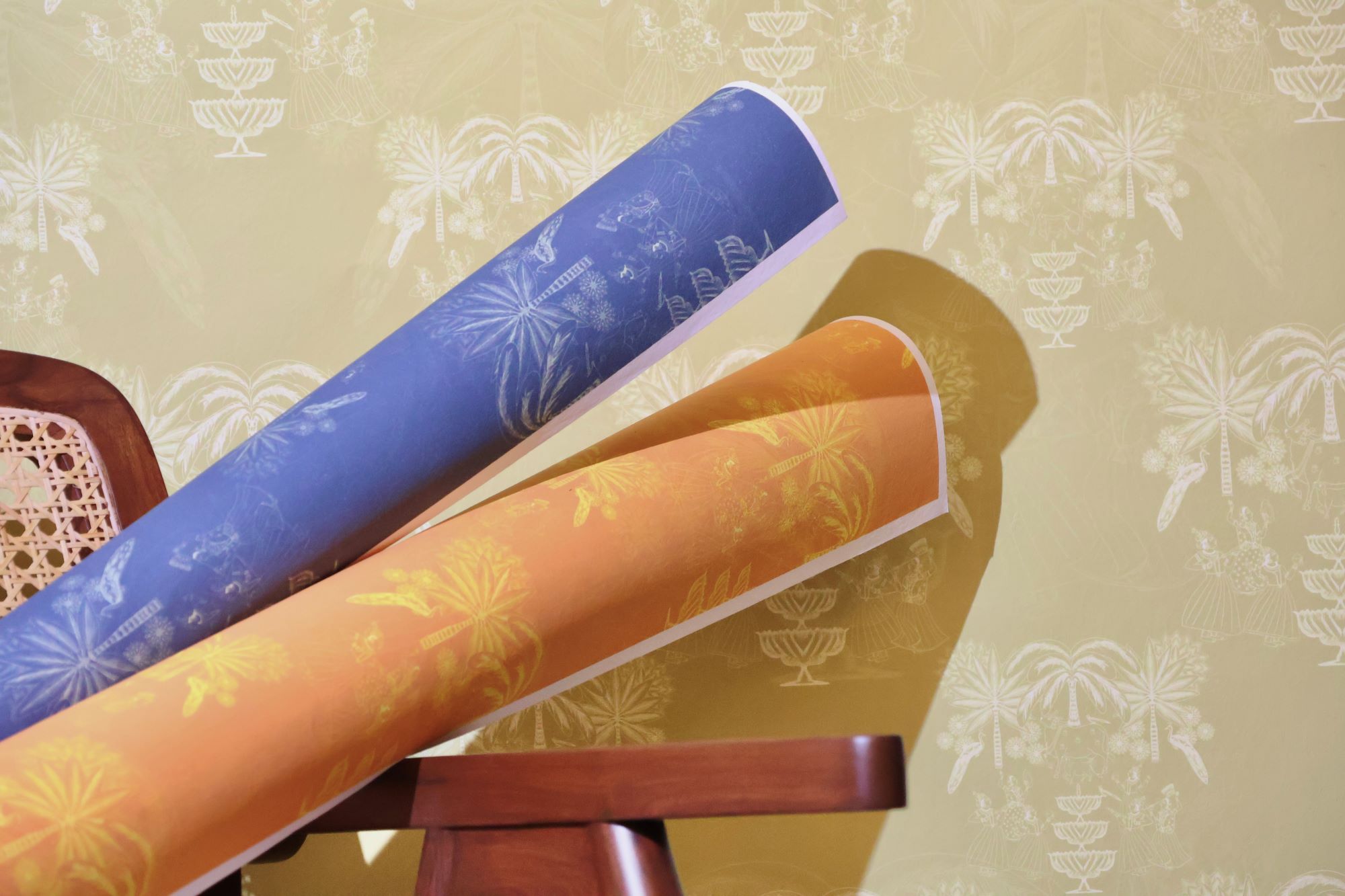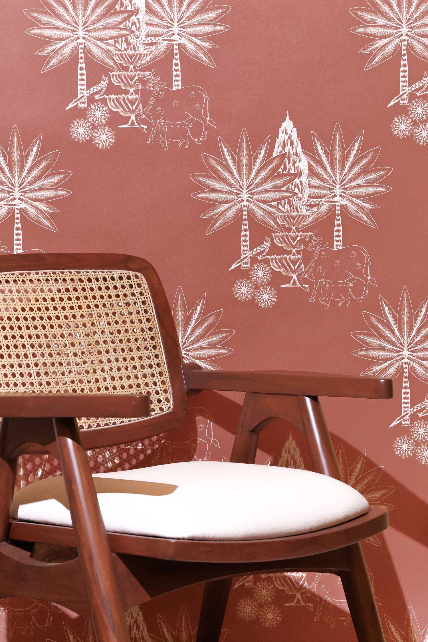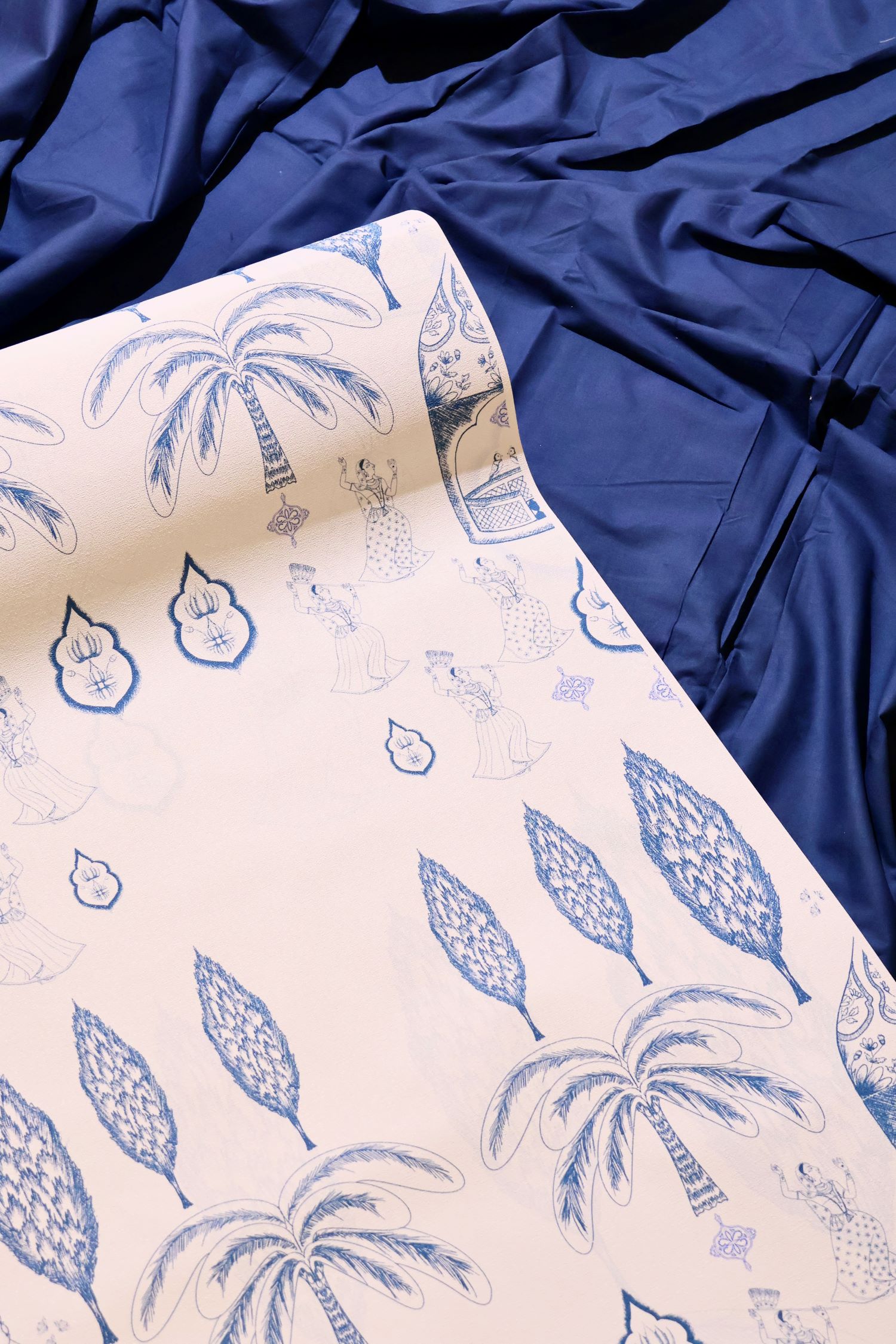 The “Toile de Jouy x Pichwai” wallpaper collection represents a captivating blend of two distinctive art forms, each with a rich heritage and unique characteristics. By juxtaposing the delicate and intricate technique of French toile de Jouy with the vibrant and narrative-rich style of Rajasthani Pichwai, this collection creates a unique aesthetic that bridges cultures and traditions, transforming spaces into immersive artistic experiences. This collection aims to explore the distinct features of each art form and illustrate how their combination leads to the creation of something new and beautiful.